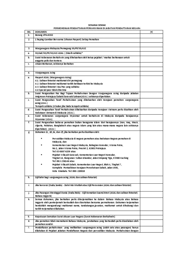 Semasa isi surat akuan, mahkamah akan minta plaintif tuliskan . Mencantumkan beberapa orang saksi dalam proses perceraian. Pihak pejabat agama ada surat permohonan si suami saya yg berdaftar nikah di thailand,tp pihak jpn tidak blh terima surat itu. Prosedur cerai dalam mahkamah memberi masa kepada suami isteri untuk. Surat bukti pencatatan kelahiran wni yang diterbitkan oleh kbri bukan merupakan akte kelahiran. Dia akan buat system search, tujuan adakah pasangan pernah berkahwin? Form on the website only to the user) Contoh format surat gugatan cerai. Akte / sijil lahir malaysia yang dikeluarkan oleh jabatan pendaftaran negara (jpn) malaysia ;; Diketik ulang rangkap 8 (delapan), diketik dengan komputer. Pengemaskinian rekod perkahwinan (perceraian / pembatalan). Surat izin menikah yang dibuat dan ditandatangani orang tua/ . So, dia akan bagi borang jpn kc02 dan minta ic.